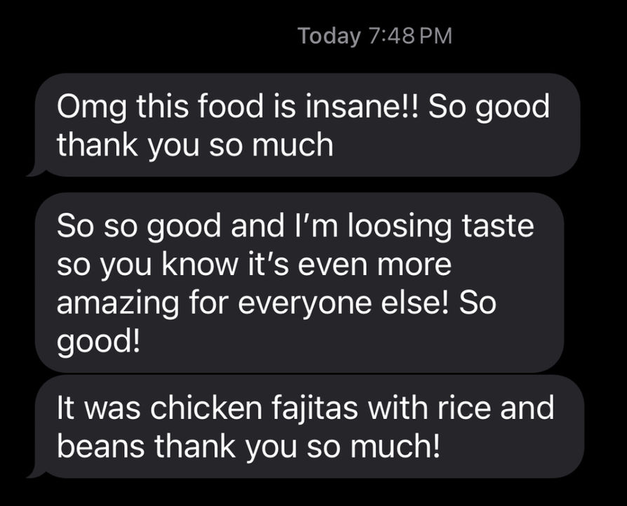 From weekly homemade meal delivery to one-time orders and special events, our goal is simple: to keep you well-fed, worry-free, and excited about what’s for dinner.